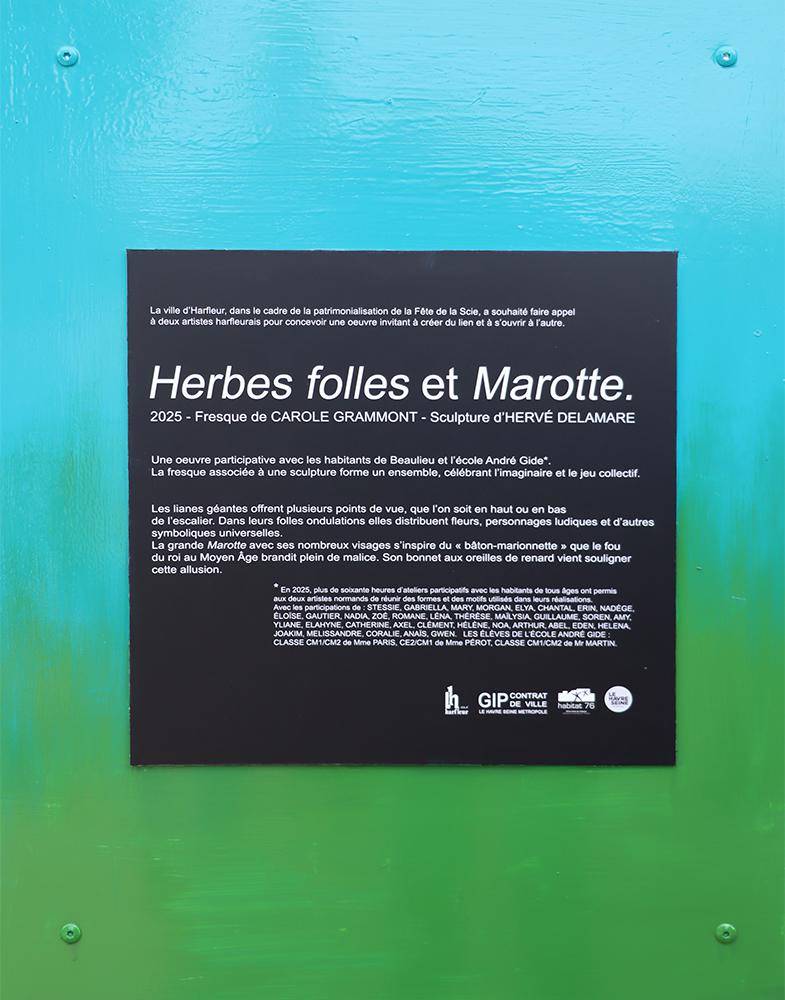 Intitulé « Marotte et herbes folles » cette réalisation artistique est le fruit d’un travail commun entre les artistes Hervé Delamare et Carole Grammont et les habitants du quartier.